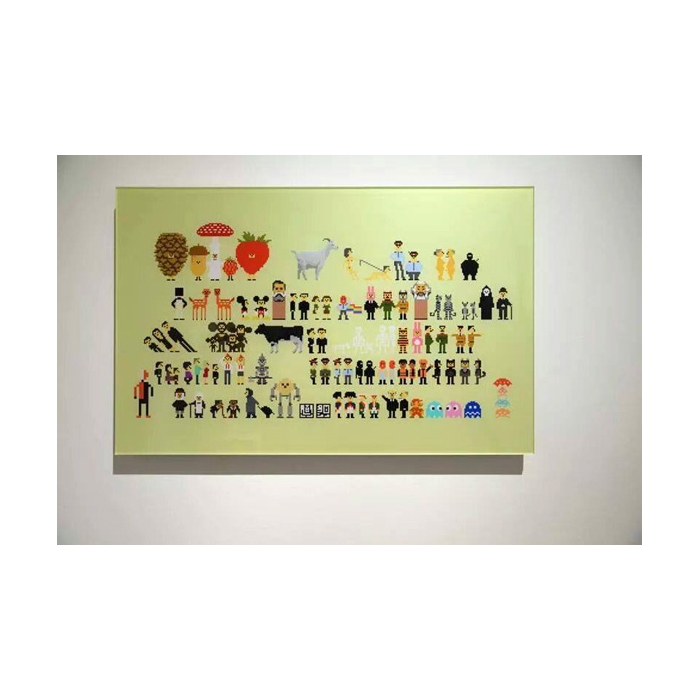 Не теряя своих качеств, «виртуальный», пиксельный рисунок Тузова прекрасно ложится в технику мозаики, выполненной из современных отделочных материалов. Увеличение масштаба читается, как монументализация героев и при всей оригинальности графики все равно не избежать привкуса эстетики советского монументально искусства, давно перешедшего в режим «песен о главном», но так и не пережитого. Что и не удивительно, новая идеология так и не обросла собственной внятной школой и все нынешнее делается, практически, теми же руками армии художников – монументалистов. Текст Дмитрий Пиликин