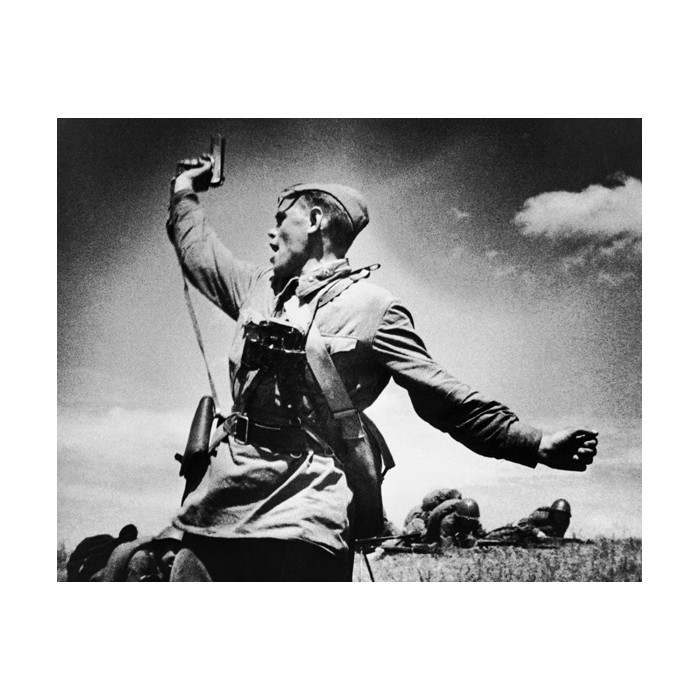 На выставке будут также представлены знаменитая фотография 1942 года «Комбат», сделанная советским фотографом Максом Альпертом, где за несколько секунд до гибели изображен командир, поднимающий солдат в атаку с пистолетом ТТ в руке; легендарный плакат «Не болтай!» Нины Ватолиной, агитационные плакаты «Окна ТАСС», которые, как известно делались вручную.