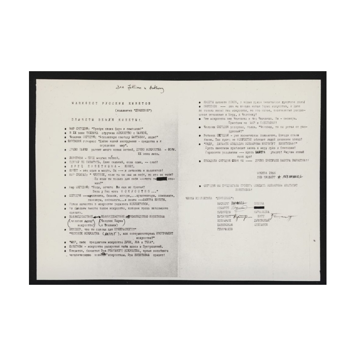 Художники-кинетисты, составлявшие «Движение» («русские кинеты», как они себя называли), создали в третьей четверти XX века творческое наследие, актуальное и в наше время. Оно включает разработки и художественные открытия в сфере «классической» живописи, графики и прикладного искусства, в области статических и кинетических объектов, перформансов и хепенингов. Опираясь на конструктивистские традиции русского авангарда начала XX века, используя идеи и завоевания современных им западных художников, – «Движение» стремилось к синтезу искусств, объединяя передовое звучание так называемой «конкретной музыки» с мимансом и структурные живописно-графические геометризмы с кинетической скульптурой.