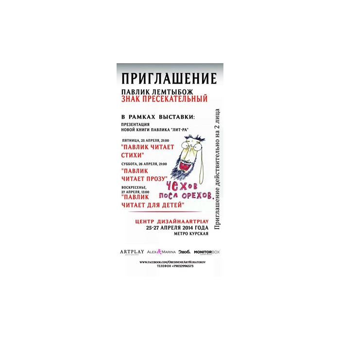 В рамках книжной художественной ярмарки "АРТКНИГА и Рукиздат" объединение независимых кураторов Alex&Marina представляет выставку графики Павлика Лемтыбожа «…Знак пресекательный – многоточие». Выставка познакомит зрителей с творчеством питерского художника, музыканта, поэта Павлика Лемтыбож.