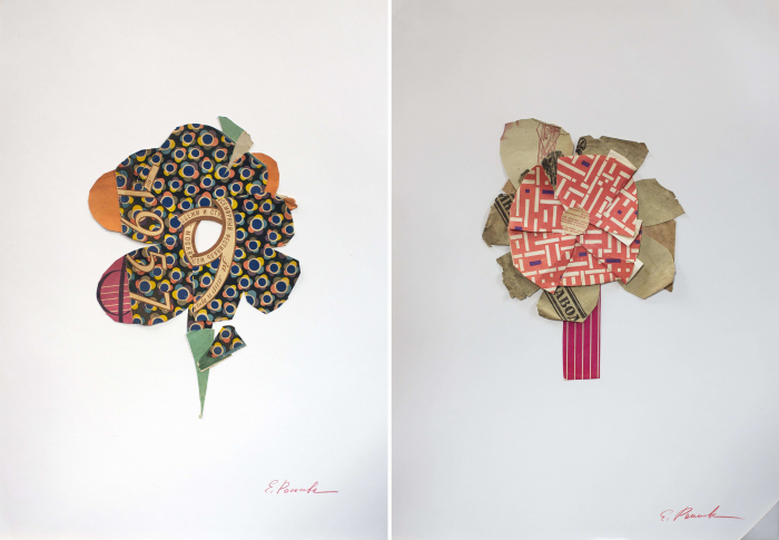 Серия «Бумажные цветы» также оказывается пронизанной стремлением вернуться в детство, в безопасность. Выбранный для этого апсайкл-арта материал — конверты от советских пластинок — отсылают к раннему опыту старшего поколения любителей современного искусства, недоступному и непонятному для более молодых зрителей. Прошлое постепенно перестает быть областью травмы и превращается в объект ностальгии. В конце концов, наше настоящее строится на прошлом как на фундаменте, именно предыдущий опыт делает нас теми, кто мы есть, оставляя на нашем сознании случайные царапины и потеки, он формирует наш оригинальный взгляд, который позволяет создавать что-то новое. «О, если б знали из какого сора растут цветы…»