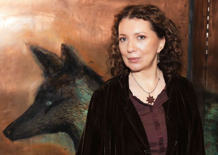 Екатерина Рожкова на фоне своей работы из серии «Лес» © Фото предоставлено художницей