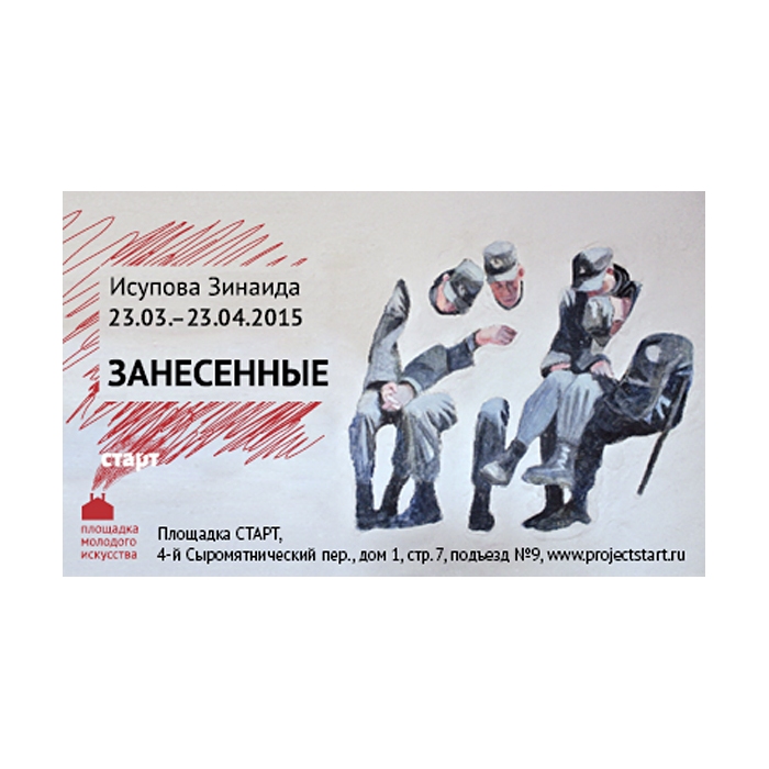 Изначальная идея выставки Зинаиды Исуповой связана с политическими и социальными событиями последних месяцев на Украине. Основные носители образов в проекте – тяжелые живописные плиты, содержащие в себе портреты «занесенных». «Занесенные» здесь – обычные (типичные) люди, чьи образы погрязли в светлой и мутной жиже, тонут в ней; они не то спят, не то мертвы или пребывают в анабиозе. Некоторые кадры взяты за основу из реальной хроники и наделены едва заметной узнаваемостью: кажется, что вот именно этот ракурс был в очередных трагических новостях. Гипсовые массивы становятся здесь одновременно и табличками для клинописи, и мемориальными плитами. В проекте Исуповой чрезвычайно важен личный, биографичный момент. Художница родилась и выросла в Киеве, а с 2013 года учится в Москве в Школе Родченко. Драматичный момент украинской истории невольно переживался дистанцированно, что проявилось в кропотливой технике, раздвигающей временной зазор между событием и его художественным воплощением.
